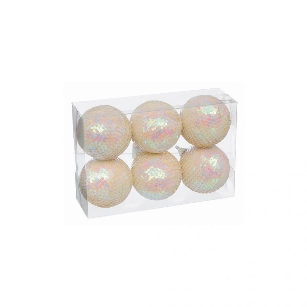 Елочная игрушка Jumi шариков с блестками, 6 шт (6 см) айвори (5900410791022)