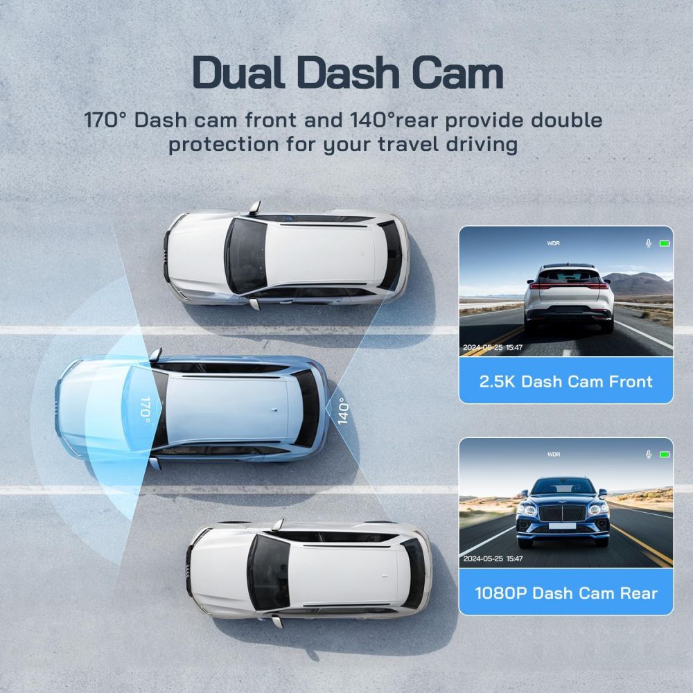Обидві камери оснащені ширококутними об’єктивами з кутом огляду 170°, що забезпечує повне покриття дорожньої ситуації та мінімізує сліпі зони.